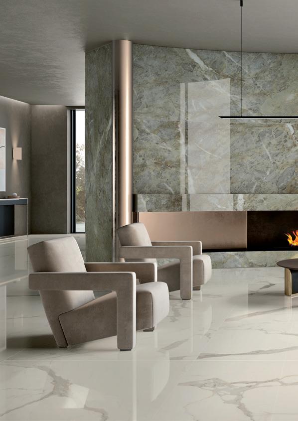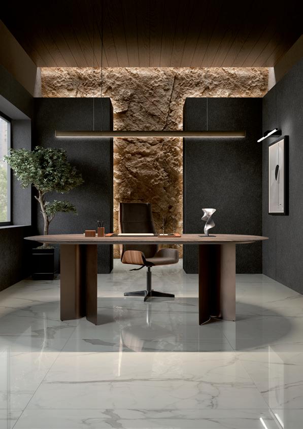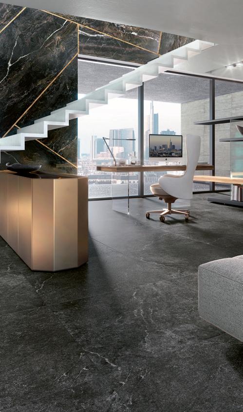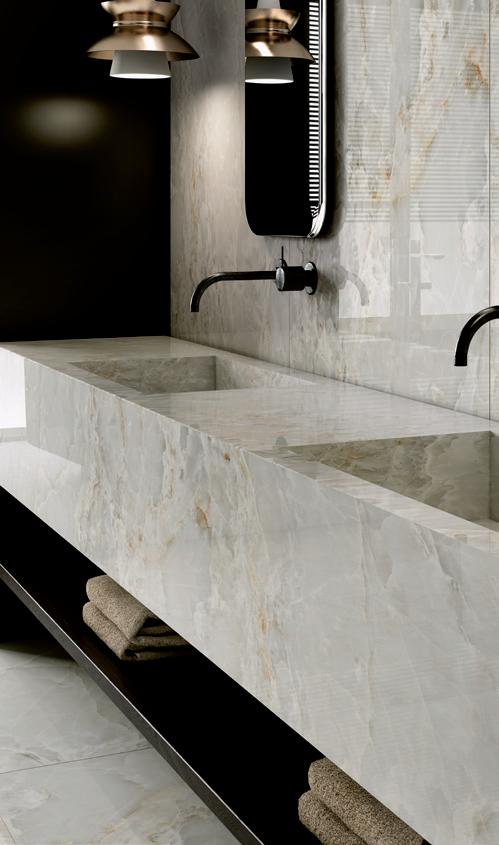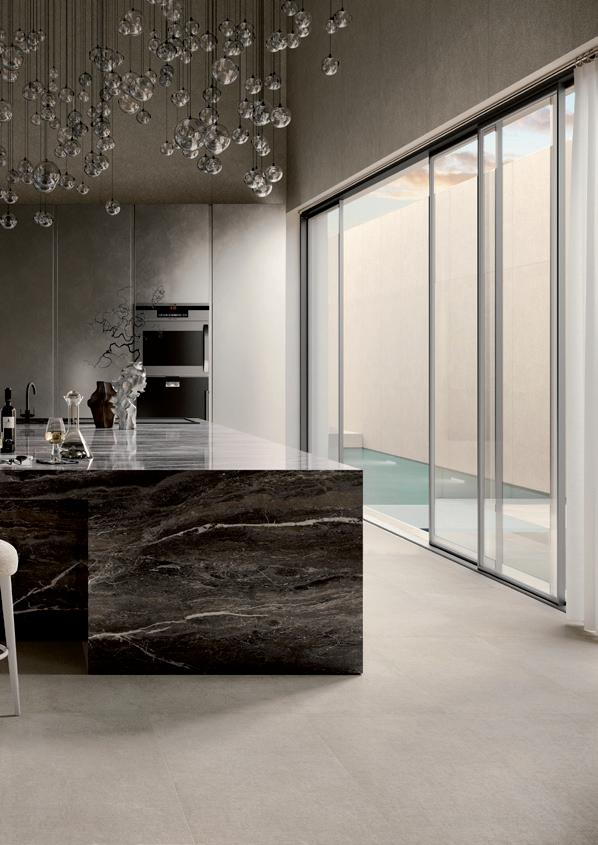 Over-sized, high-quality ceramic slabs. Ultra-thin and extremely durable, thanks to the exclusive fiberglass reinforcement. Dalles céramiques de grand format et de qualité supérieure. Ultra-fines et extrêmement résistantes, grâce au renfort exclusif en fibre de verre. Großformatige, hochwertige Keramikplatten. Ultradünn und äußerst widerstandsfähig, dank der exklusiven Verstärkung aus Glasfaser.