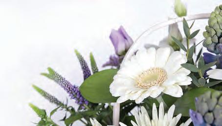 Hydrangeas have big, rounded petals that produce a sypherical shape and can be found in a range of colours, such as blue or white.