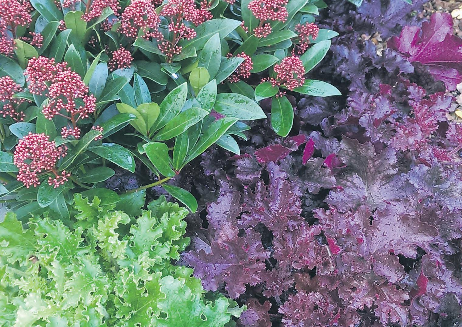 There’s still some colour to be found among leaves and berries. Winterflowering shrubs such as mahonia media hybrids, winter honeysuckle and viburnum bodnantense will bring gorgeous fragrance to the short days.