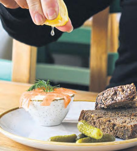 Monday to Saturday the team serve breakfasts and lunches, and on a Sunday it’s All-Day Breakfast. You’ll find a range of homemade cakes by the in-house baker, complemented by some allergenfriendly local bakes, huge sweet and savoury scones, Devon cream teas and coffee hailing from the Crediton Coffee Company.