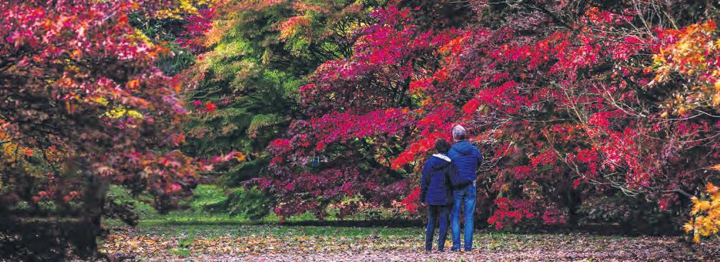 THE VYNE’S ANCIENT WOODLAND, just a few minutes’ walk from the gardens. Mature beeches, oaks, sweet and horse chestnuts mingle with smaller lime, cherry and whitebeam to produce a leafy carpet of multiple colours.