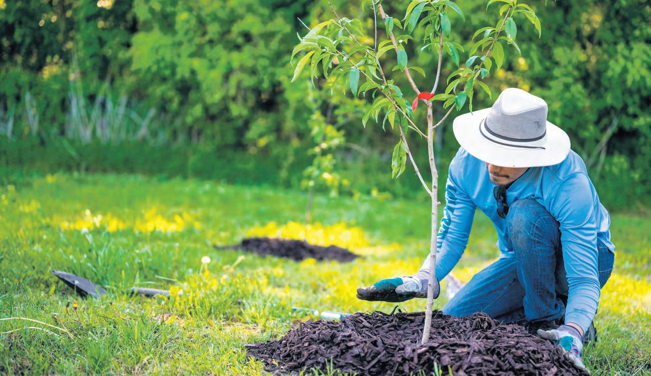 Mark Hinsley explains that 100mm depth of composted woodchip around the base a tree will give any tree back that woodland soil it needs to withstand drought.