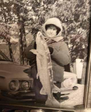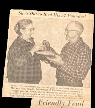 Their cozy home featured a massive stone fi replace that was the heart of the house. Hanging above the mantle was an enormous muskie that weighed over 57 pounds and measured fi ve feet long. This remarkable fish was speared by my great-grandmother while ice fishing on Torch Lake.