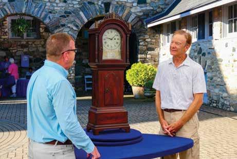 Sean Delaney (left) appraises a John Bailey dwarf clock, ca. 1800, in Charlevoix, Michigan. Photo by Rob Thompson for GBH, © 2026 WGBH Educational Foundation.