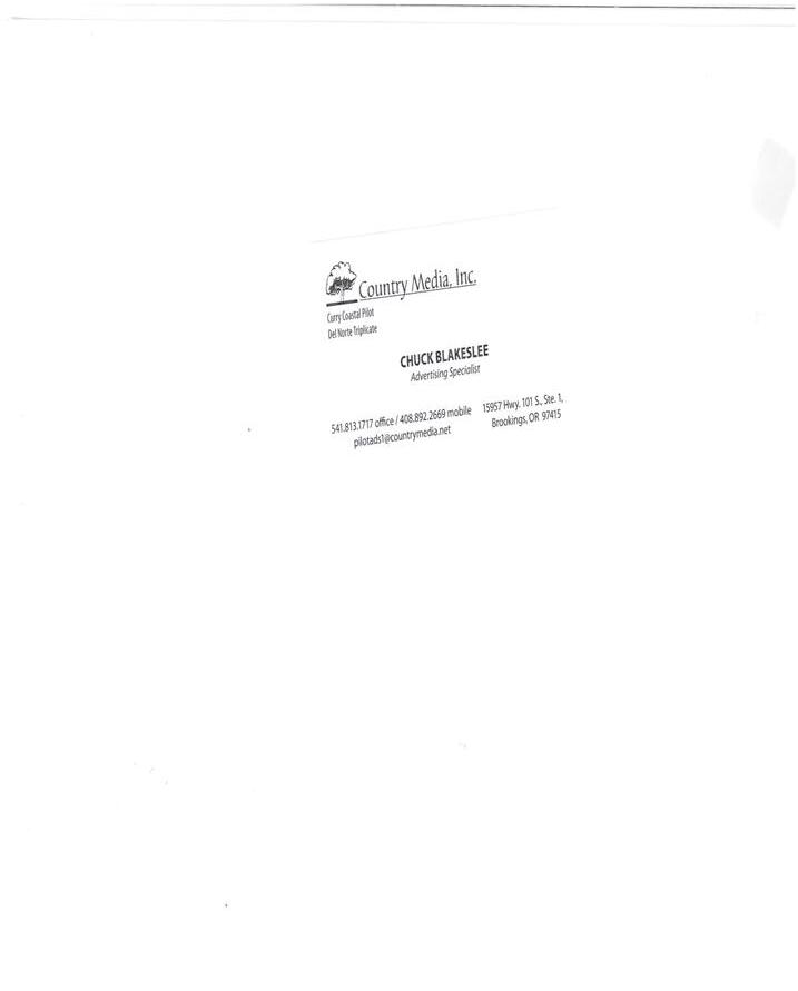 The Curry County Soil & Water Conservation District is holding its regular monthly meeting at 5:30 p.m. on January 27, 2026. In addition to routine business, agenda topics include a mid-year General Fund budget forecast update. Other matters may be discussed. The meeting will be held at the Curry Watersheds Partnership office located at 29286 Ellensburg Ave., Gold Beach. The location is accessible to persons with disabilities. An option to join electronically is available. To access the meeting electronically, please contact Tammy Wills at tammy.wills@currywatersheds.org or (541) 247-2755 ext 6. To request an interpreter for the hearing impaired or for other accommodations for persons with disabilities, please contact Tammy Wills at least 48 hours prior to the meeting.\~ 1/21/2026 (online 1/191/25) Pilot 422599