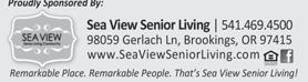 • The Walking Group, Azalea Park: 11 am. Meet by Capella by the Sea. If raining meet at Brookings Harbor Shopping Center by the barbershop. For information 541-412-8664