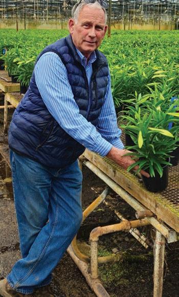 scales are planted. Scales are the specialized leaves designed for food storage that are attached to the basal plate which together make up the bulb. When separated and planted, a small bulb will grow at its base. It can take two to three years for a saleable bulb to be produced. Each year after planting, everything is dug up and sorted, the commercials are packed and sold and everything else is replanted for another year of growth. When the plant is ready, it is packed and shipped to greenhouse growers around the nation who force the bulbs to produce flowers for Easter. The natural cycle of the plant blooms in July in the fields in Smith River. What can go wrong in the process? Plenty. Putting small pieces of fleshy bulbs into the soil in late summer and hoping one has something amazing A year later after 80 inches of rain, soil and airborne fungi, bacteria, nematodes (worms), freezes, gophers and government oversight is truly an act of faith and a highly regarded agricultural methodology. The Triplicate asked Rob, no spring chicken himself, why he toils with the Easter Lily, he responded, “ It’s what I do.”