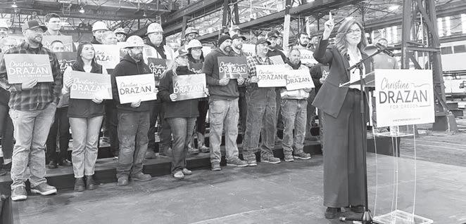 Republican Christine Drazan launches her campaign for governor at Gunderson Marine & Iron in Portland on Oct. 27, 2025.