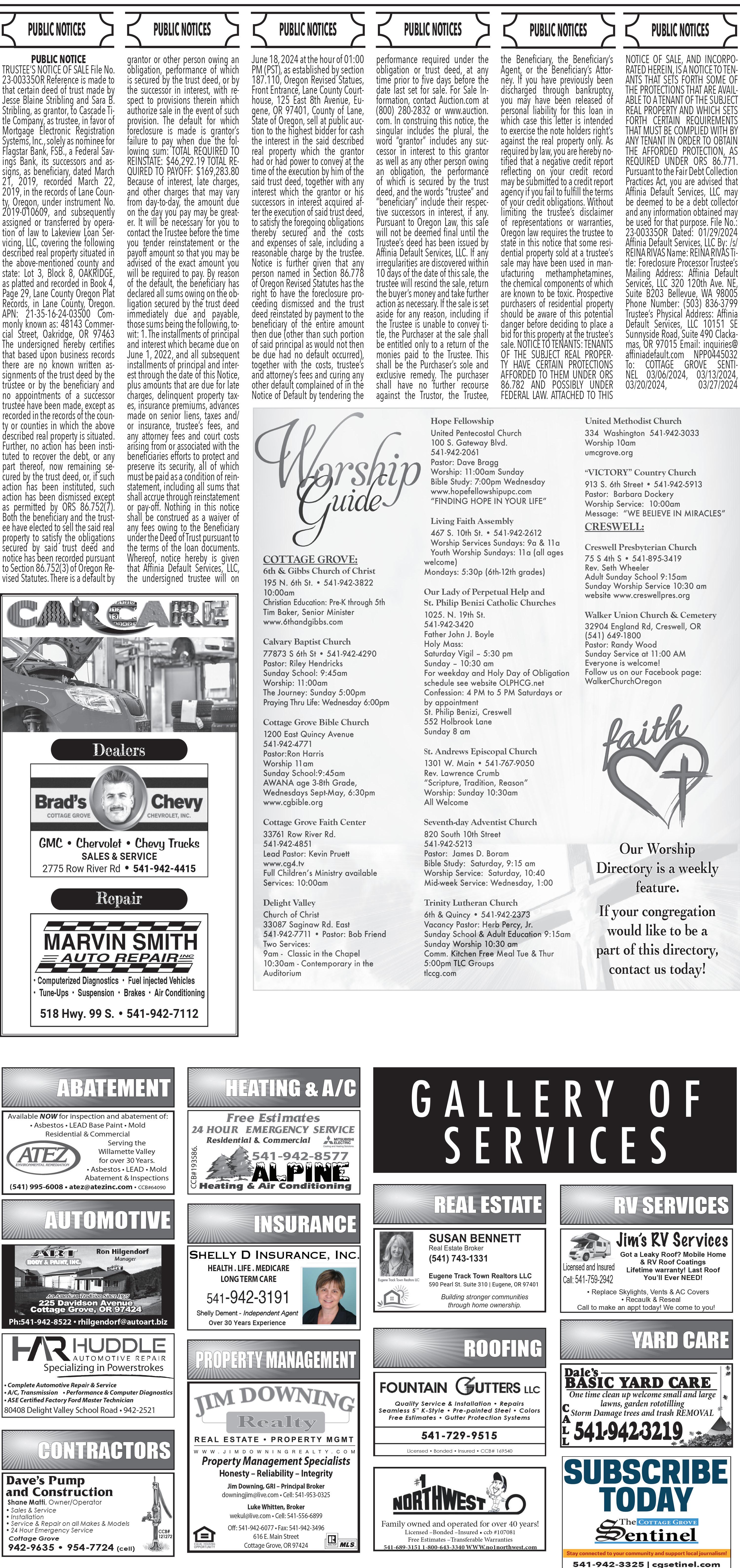 Boy Scout Troup 140, 7 pm, American Legion Hall, 826 W. Main St. (Call Karen for info: 541.942.4413)
