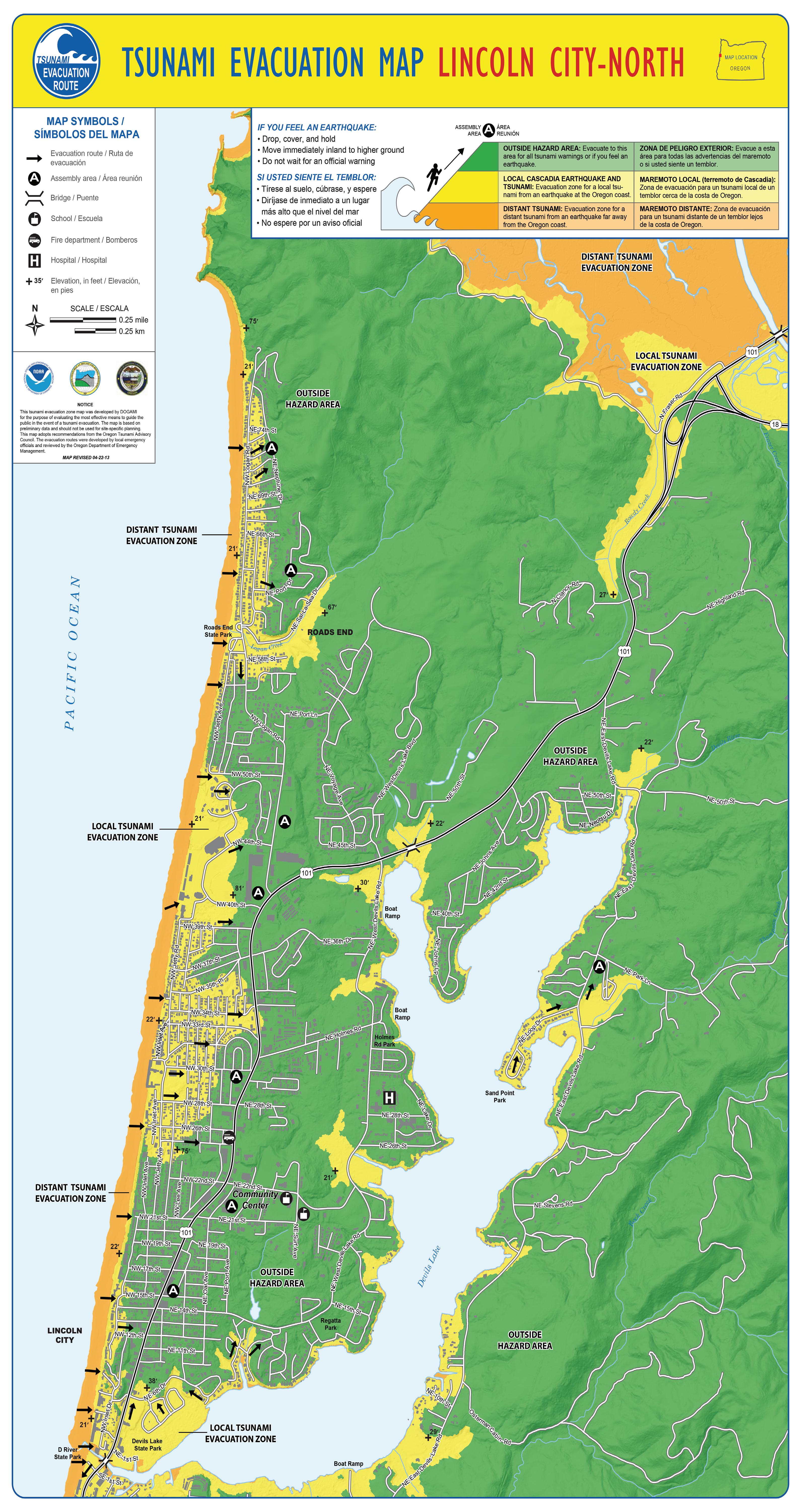 del océano dentro de 150 pies de North 35th Court y calle North 15th, como se establece en la Regla Administrativa de Oregón 736-0240025.