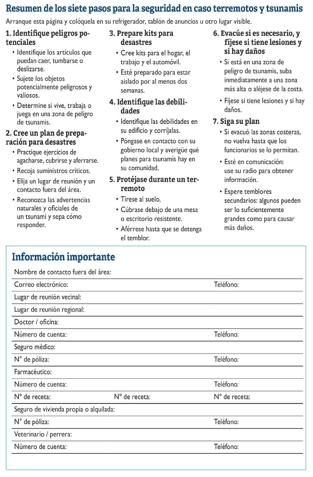 Preparación para Emergencias Página 5 Página de Reubicación de tienda de comestibles P ágina 2