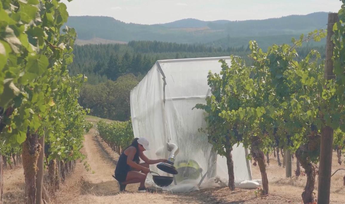 Para comprender mejor qué impacto podrían tener los tiofenoles en el vino, Cole Cerrato, un investigador de la Universidad Estatal de Oregón que trabaja en colaboración cercana con Tomasino, realizó un experimento en el viñedo de la universidad. Cerrato y otros en el laboratorio construyeron una estructura similar a un invernadero, la colocaron sobre una hilera de uvas y expusieron las uvas al humo. Ellos cosecharon esas uvas y hicieron vino con ellas.
