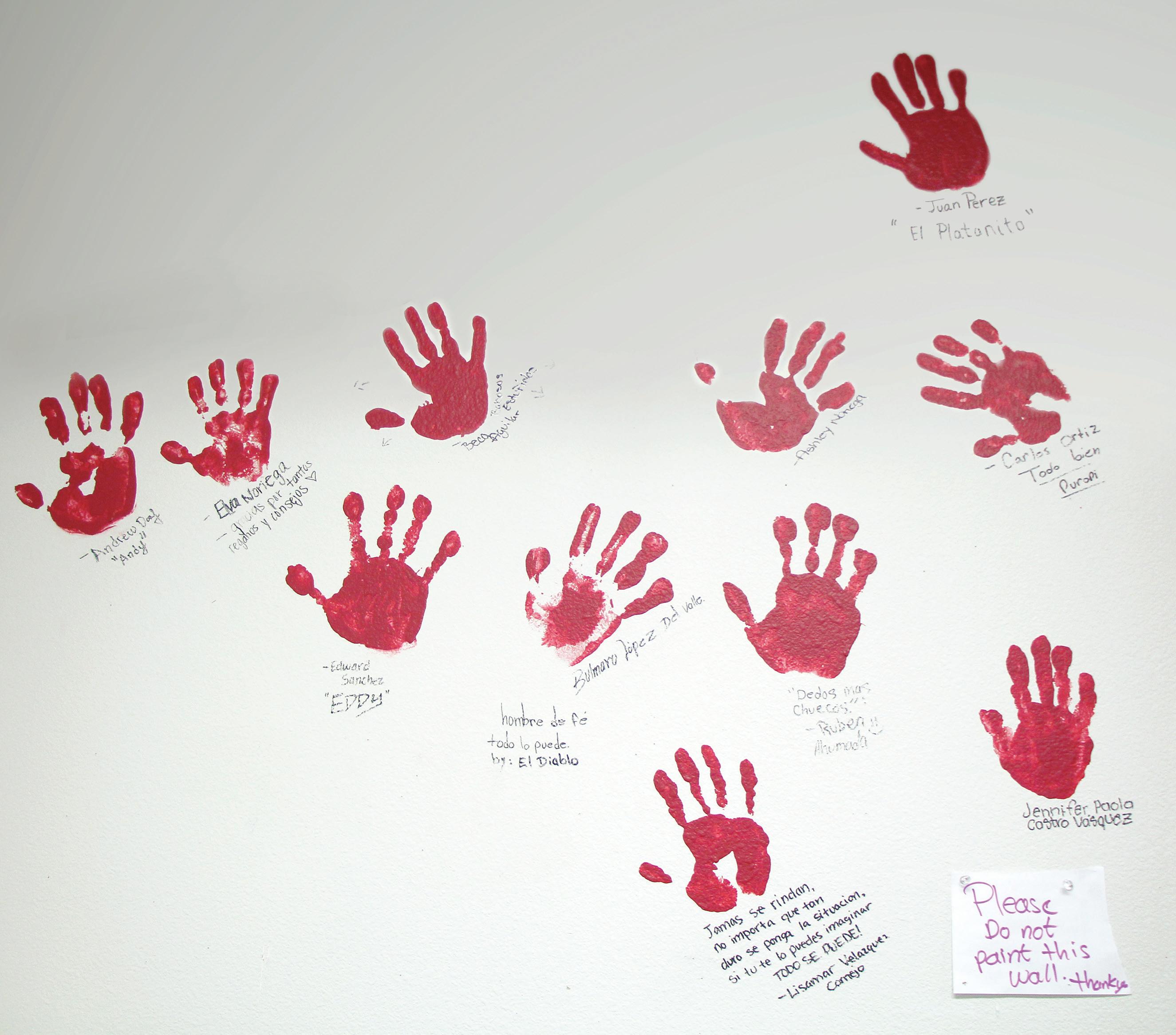 Maestro bilingüe ayuda a los estudiantes a dar un paso a la vezJeremy C. Ruark / Country Media, Inc. Estas huellas rojas de manos son de estudiantes hispanos que se graduaron de la escuela secundaria Taft.