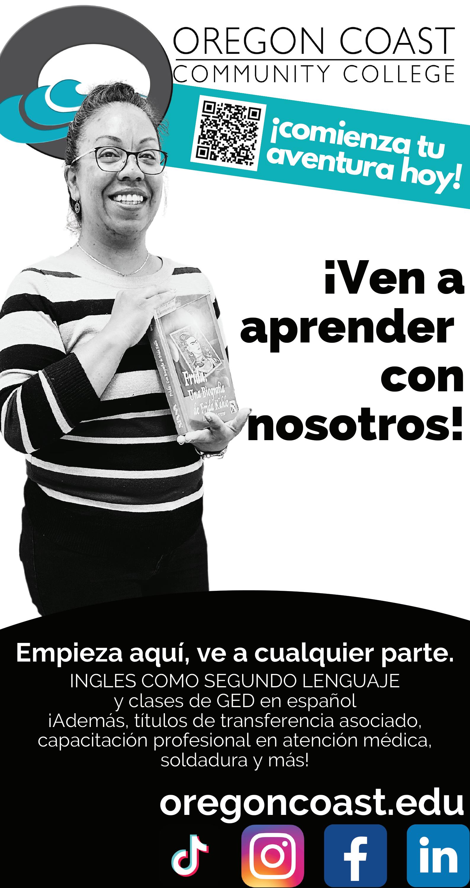Pedro dijo que hay más recursos para ayudar a los estudiantes y sus familias disponibles en la comunidad y a través del distrito escolar y el Colegio de Oregon Comunitario Costal (OCCC Oregon Coast Community College como es conocido por sus signos en inglés.)