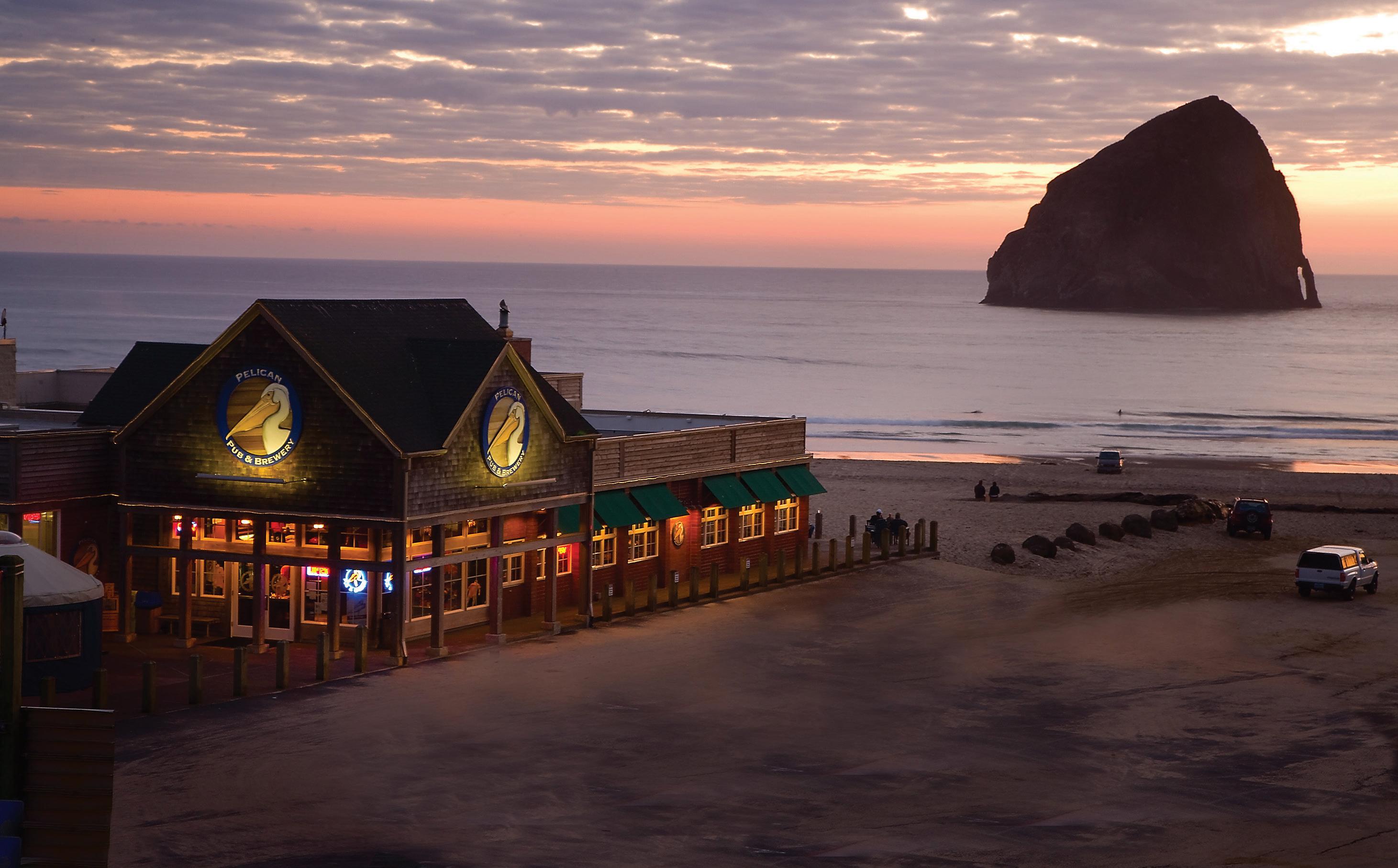 La costa de Oregón tiene una buena cantidad de playas impresionantes, formaciones geológicas espectaculares y bosques impresionantes, pero también alberga comunidades costeras y una industria cervecera rica. Dos de los elementos notables en esta escena son la Compañía Pelican Brewing, basada en Pacific City, y la Compañía Beachcrest Brewing, en Lincoln Beach.
