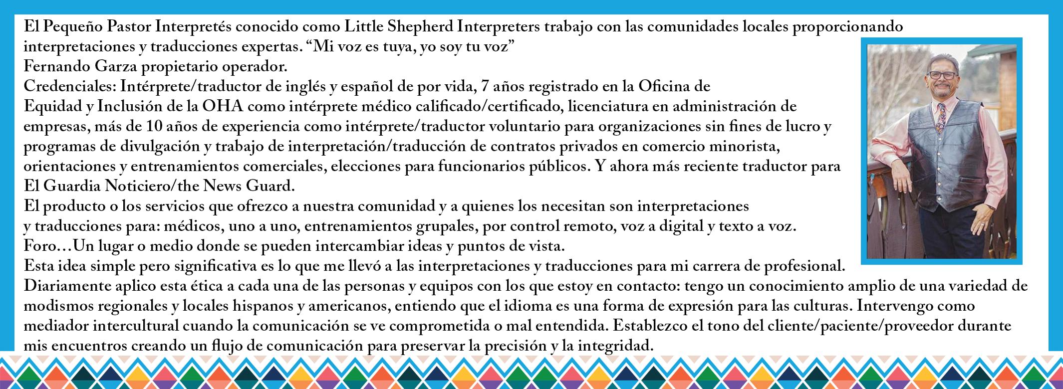 Fernando Garza, LSI Interpreter .................... dba El Pequeño Pastor Interpretes