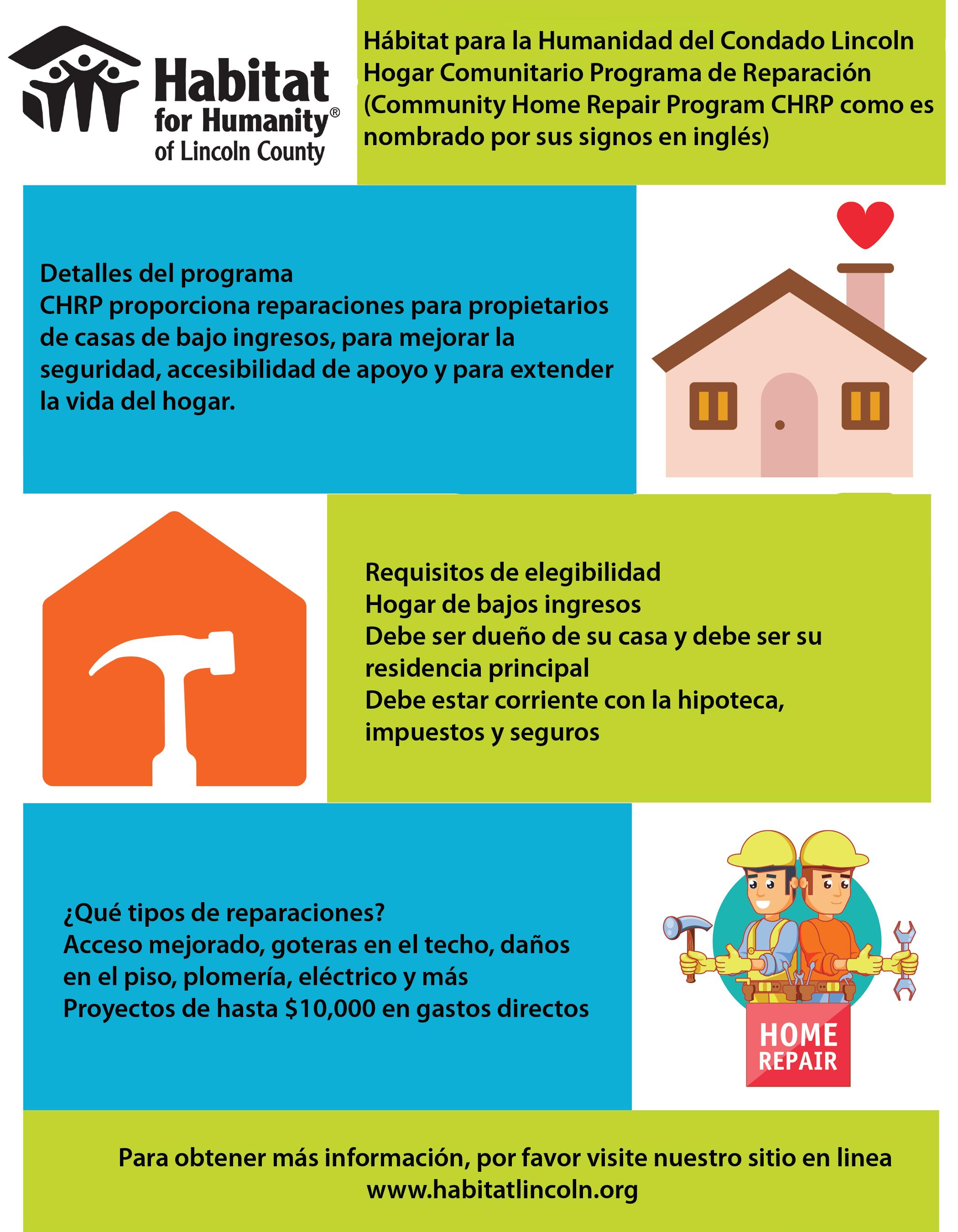 Comuníquese con nosotros y lo ayudaremos a dirigirlo a los recursos necesarios. www.habitatlincoln.org tel. 541.574.4437