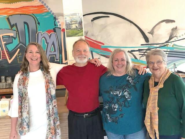 From left to right: Lyricist Margaret Trenchard-Smith, Composer Kevin Bryant Lay, Artistic Director of the Columbia Chorale of Oregon Alice Rice Boyer, and Chair of the Board of the Columbia Chorale of Oregon Marilyn Allen.