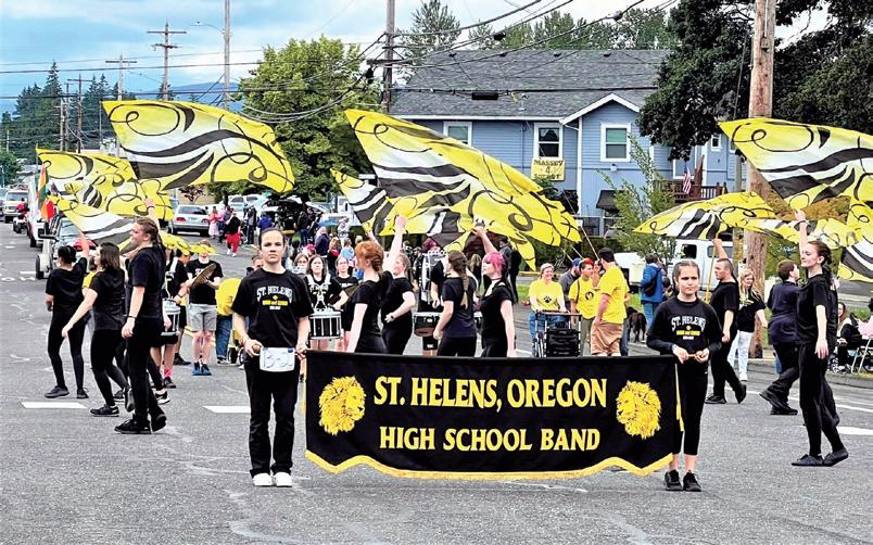 Here comes St. Helens High School Drumline & Color Guard! Their lively marching performance will have one dancing to their beat!
