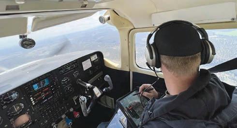 Aerial surveyor observing and recording tree damage over Oregon.