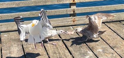 Bay. Unfortunately, not one of the crabs he caught was a keeper. But because the man was done for the day, he removed the bait from the trap, and it was a win for nearby gulls that were waiting for a handout — at least it was for the gull that won the tug-of-war. (Photos by