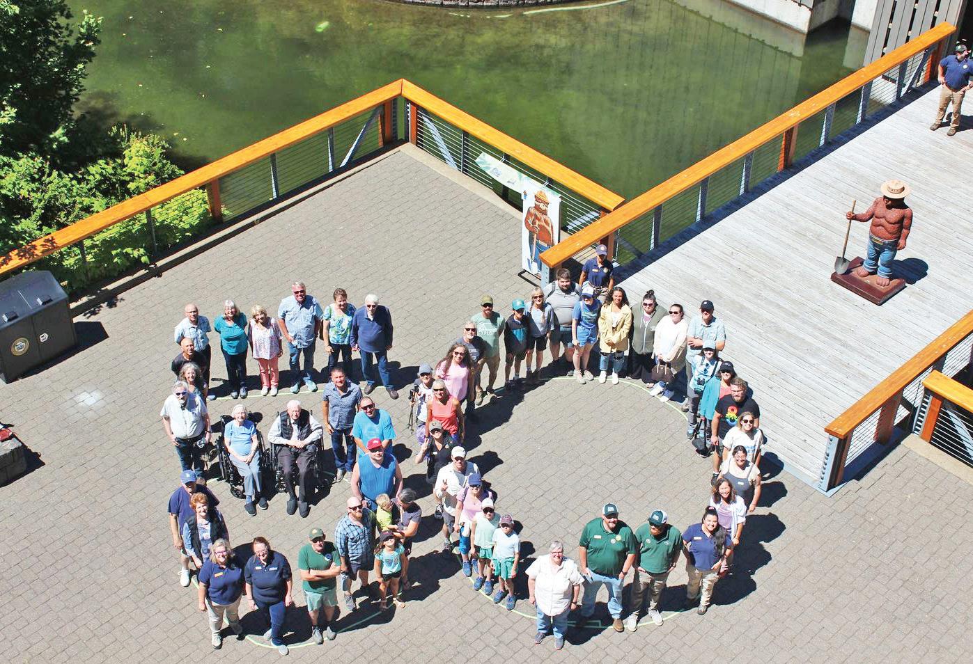 Foresters and residents gathered at the Tillamook Forest Center on July 22, to celebrate the Tillamook State Forest’s 50th anniversary with a group photo, family activities, cake and appearances by Smokey Bear.