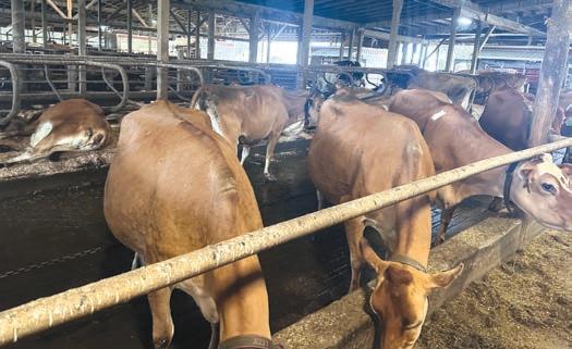 alfalfa and corn in large vats that then use a system of inductive rails to dis-pense the food throughout the dairy barns.