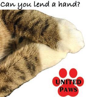 United Paws also needs help with spay/neuter clinics, driving animals to vet appointments, sewing cat blankets, data entry, and more. Please visit our website at unitedpaws. wordpress.com or call us at 503-842-5663 to learn more. You can also complete a volunteer application online to share your interests and skills with United Paws.