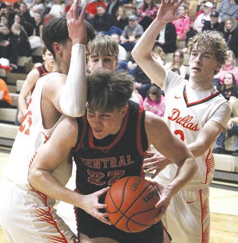 Central’s Asher Baker (22) is surrounded by Dallas defenders