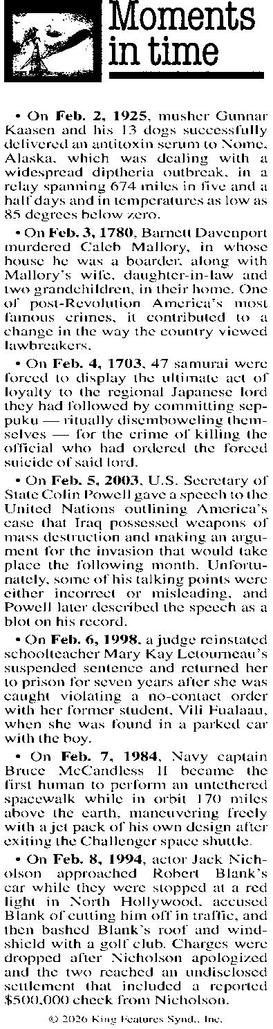 There are scientists who believe the Moon is hollow. Nov. 20, 1969 Apollo 12 deliberately crashed the Ascent Stage of its Lunar Module onto the moon’s surface. The moon rang like a bell for almost an hour leaving many to believe it was hollow like a bell. This might support some who believe the moon is a spaceship or satellite placed in position by Aliens to observe earth. Regardless of the truth, the moon is certainly a mysterious and romantic placement in space. So the next time there is a full moon on Feb. 1 take a few minutes, step outside your home and gaze up at its remarkable splendor and beauty. Maybe, just maybe, you will have a new born appreciation of this remarkable wonder. Gary Derowitsch retired from the Post Office in Monmouth after 33 years. He still lives in Monmouth.