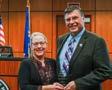 Independence Mayor Fred McArdle and ODOT Area Manager Anna Henson accept the Engineering Excellence Honor Award from the American Council of Engineering Companies of Oregon, honoring the city’s F Street Bridge project.