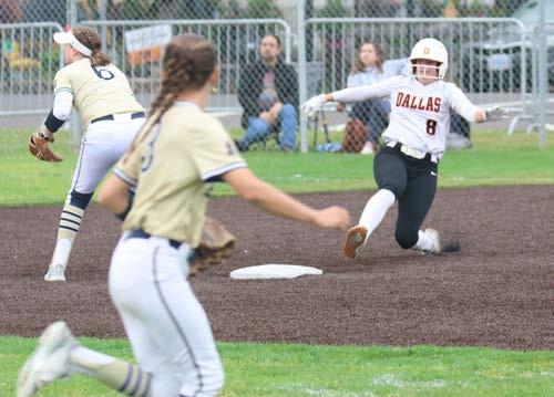 Dallas Senior Jordan Cresswell slides into second with a double in the May 24 game against West Albany.