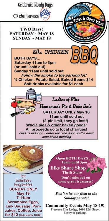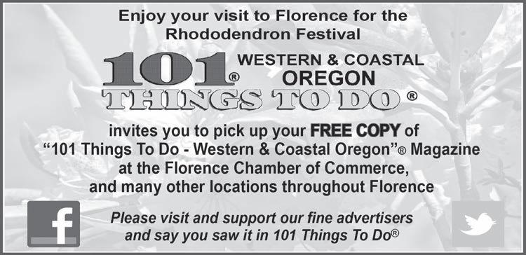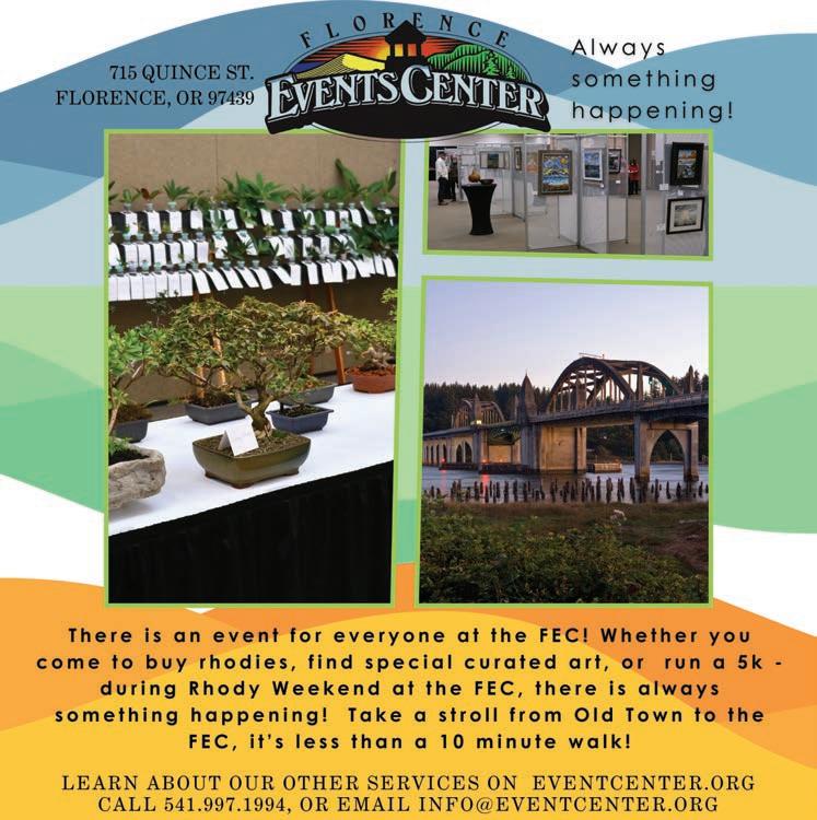 For more information on the annual Florence Rhododendron Festival, including applications for exhibitor space, parade entries, or to volunteer on the Chamber’s Rhody Fest committee, visit RhodyDays. net or contact event coordinator/director for tourism development Mitzi Hathaway at Events@FlorenceChamber.com or 541-9973128.