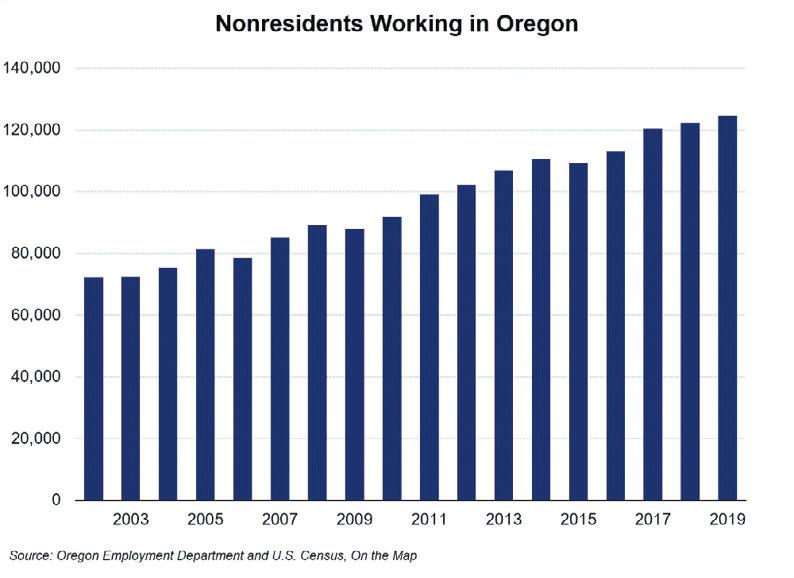 Information about Oregon’s nonresident workers is from the U.S. Census Bureau’s OnTheMap data, part of the Local Employment