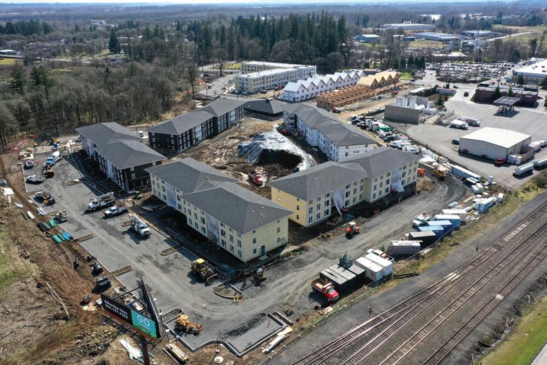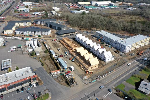 Walk-up style apartment buildings, townhomes, a senior housing building, and a central community and resident services building make up the 11-building complex. See BROADLEAF Page A8