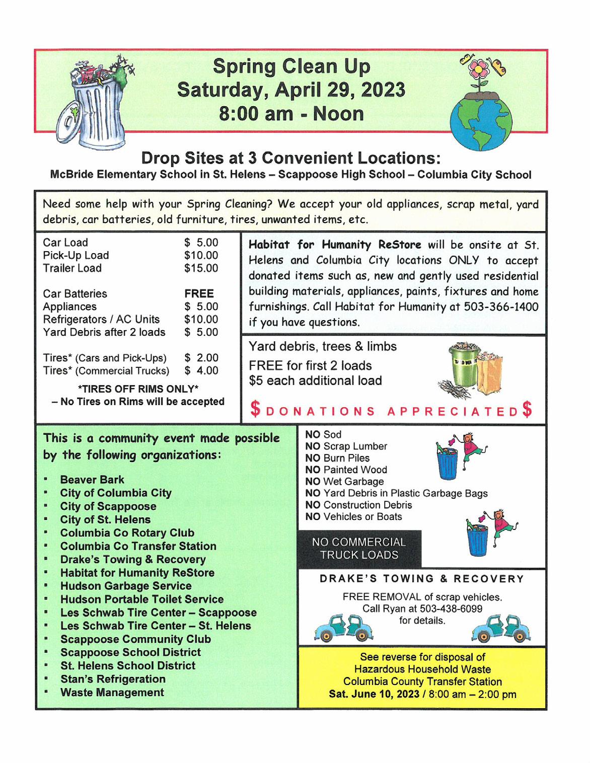 Pamona Grange sponsors the plant-a-seed, and Warren Grange sponsors the food booth. Dyno Nobel and Scaptax - Scappoose Business & Tax Service, Inc sponsor the coloring contest.