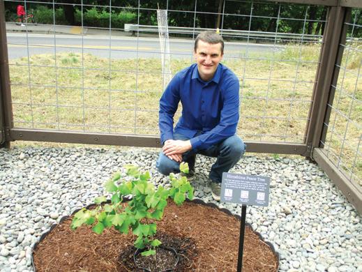 Michael Calhoun with the Hiroshima Ginko peace tree, which was planted at Ora Bolemeier Park.