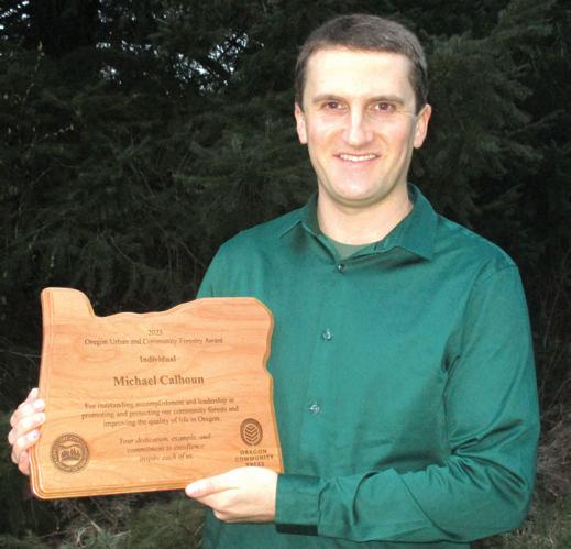 Michael Calhoun with his 2023 Oregon Urban & Community Forestry Award.