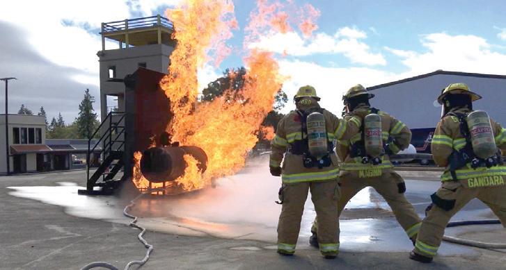 Amy Frigaard, pictured on the left, fights a blaze at the CRFR training grounds.