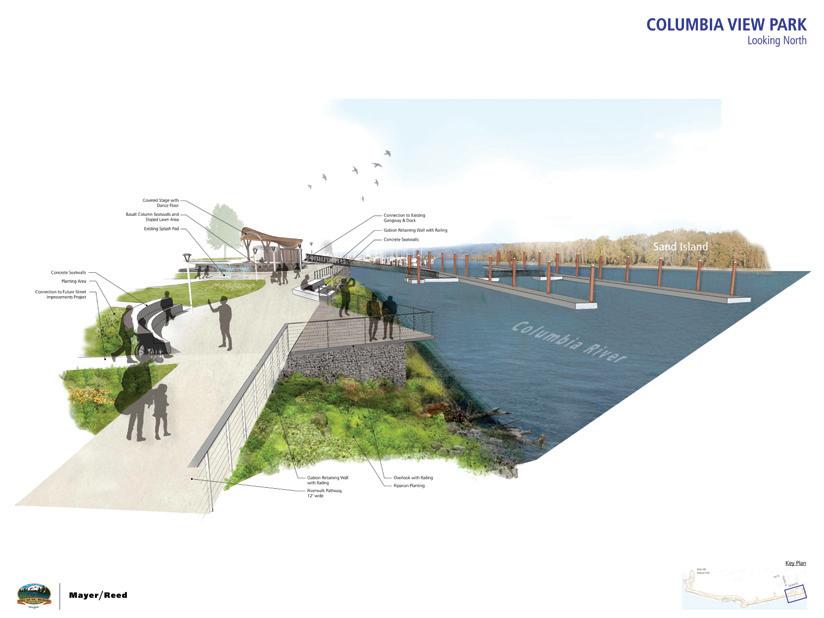 One of the Riverwalk Project. In addition to constructing a new stage and seating infrastructure for Columbia View Park Amphitheater, the project will also expand Columbia View Park, add a new playground, and begin construction of the first part of the public river walk along the Columbia River, according to St. Helens Communications Officer Crystal King. Under Phase One of the Riv-