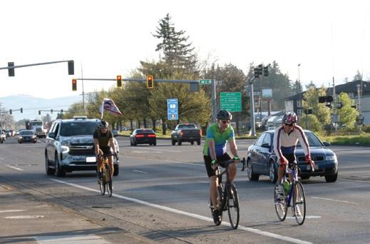 A small trail of bicycle riders could be seen cruising through St. Helens April 28,