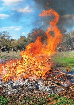 Clear a 10-foot fuelfree buffer around the pile – Make sure there are no tree branches or power lines above.