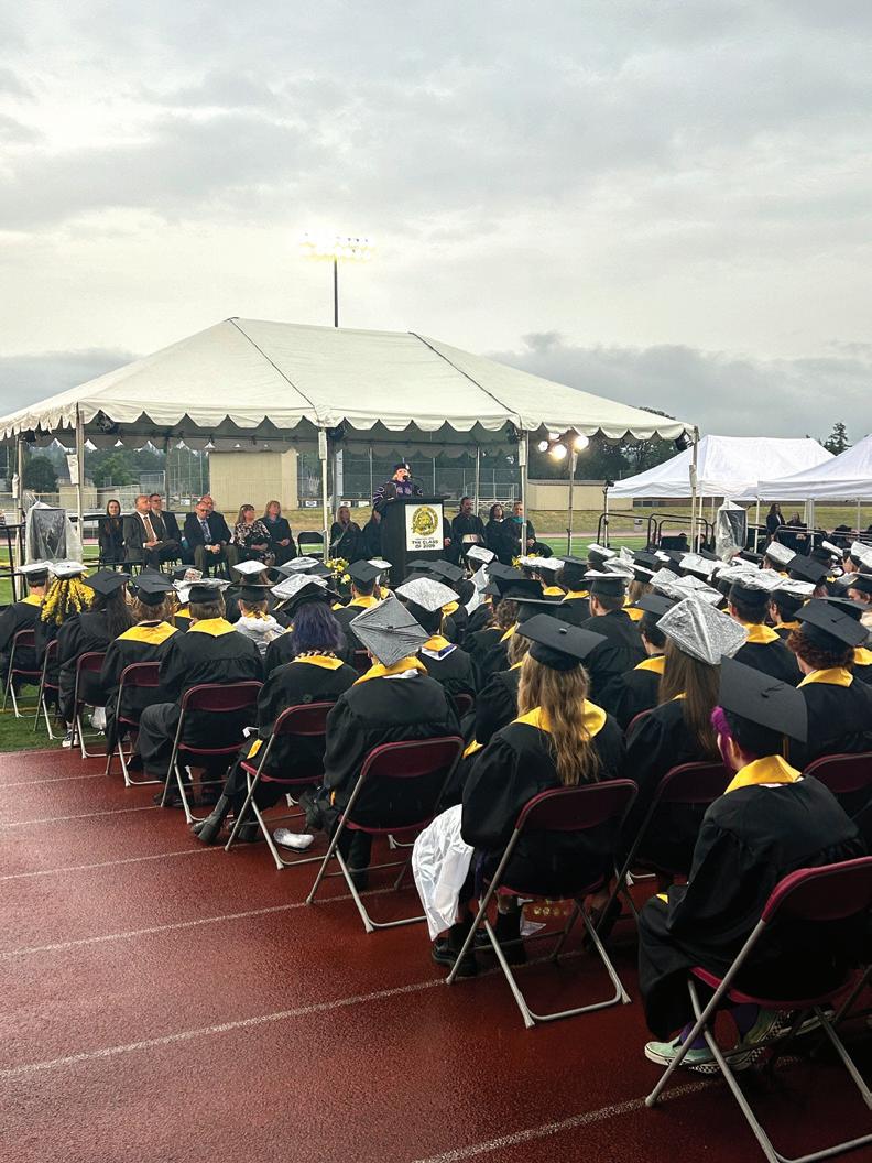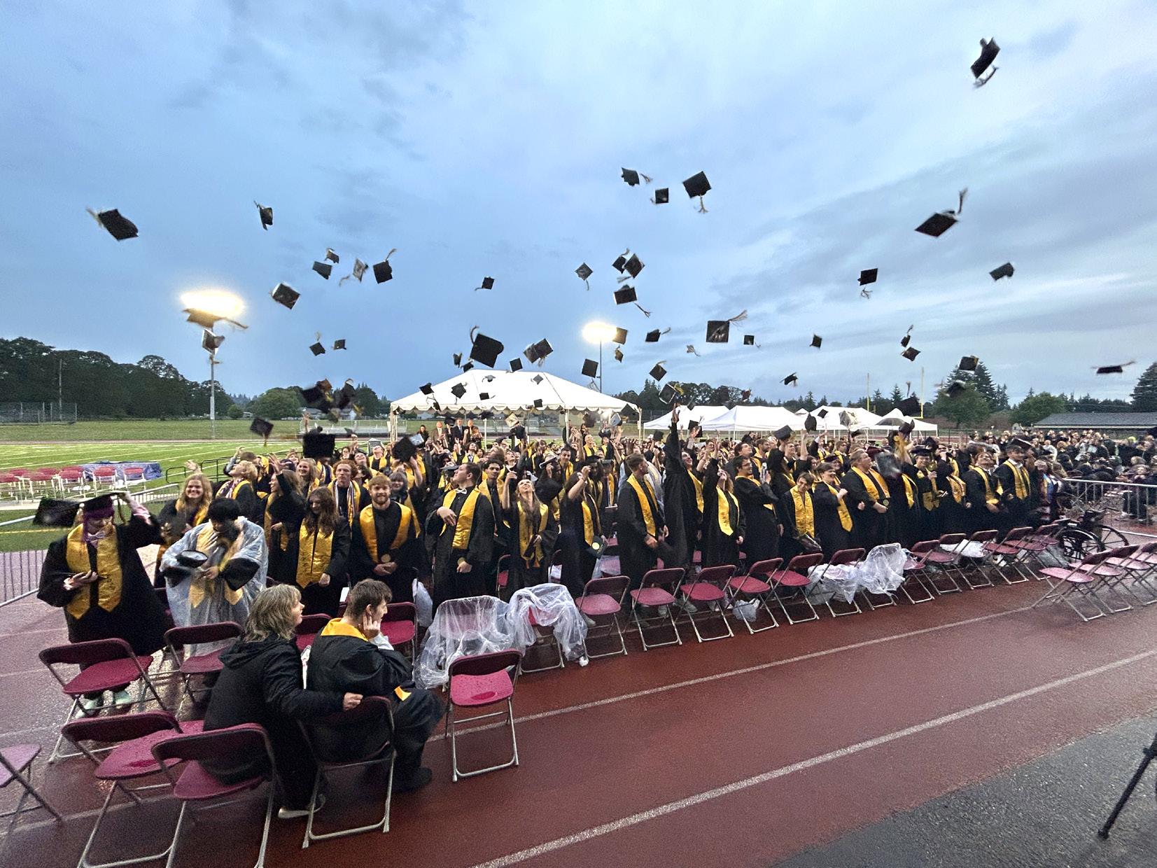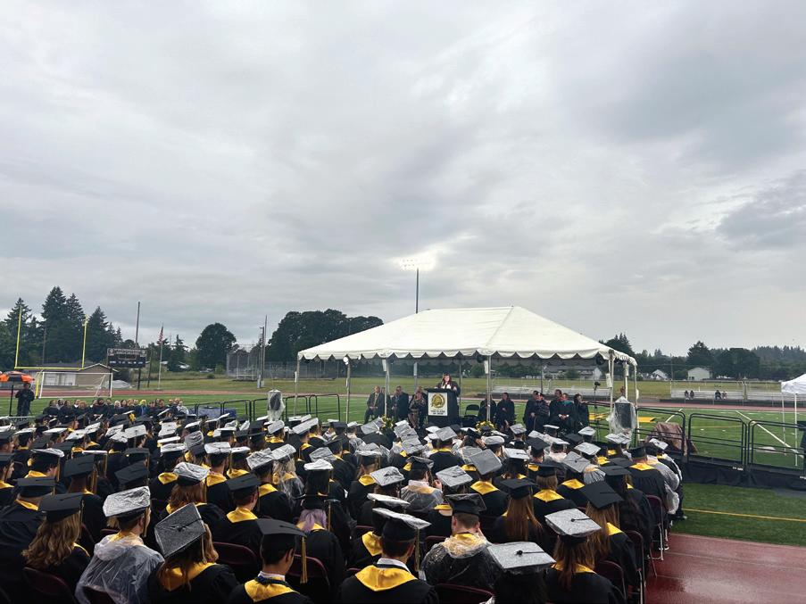 Under the stadium lights and sprinkling rain, St. Helens’ seniors listened to speeches from members of their class and faculty and celebrated their achievements with hundreds of gathered friends and family during the