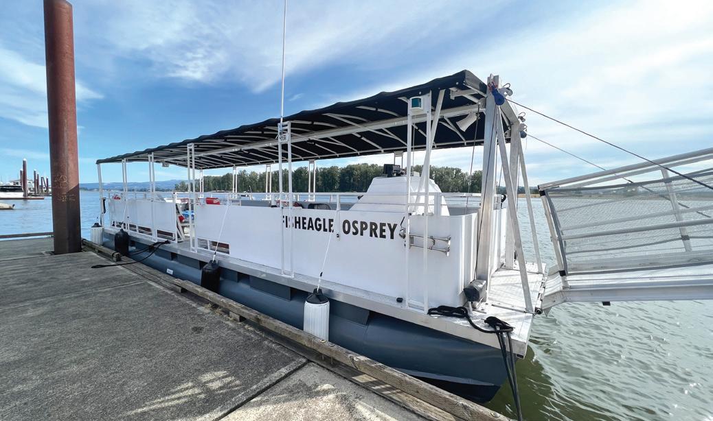 activities during the Fourth of July. Unfortunately, it was unavailable during the event because it was still going through the final steps of the Coast Guard certification process and other final preparations, according to King. “While the boat had certification in Florida, Oregon Coast Guard certification had to occur once it arrived here,” King said. “The boat canopy top had to be lifted and reassembled post-delivery. Safety equipment needed to be installed. Equipment software programming needed to be completed.”