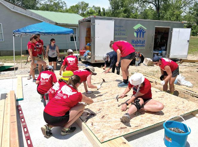 “Riders prepare presentations for the various church congrega tions and other community mem bers who may host them overnight or for a meal in order to talk a little bit about the cause and why they are dedicating their summer to this cause,” the Bike & Build website states. “In communities through which they pass, riders talk to local residents and spread the message of what it means to pedal for af fordable housing.” Each summer cyclists complete numerous pre-planned cross-coun try trips. Their ages range from 18 – 29 and the cycling groups can have to 36 members. They work closely with Habitat for Human ity and other local organizations, helping build or completing much needed repairs. The housing crisis has be come even more evident since the pandemic, with 30% of house holds having unaffordable rent or mortgage payments, according to cyclist Zoe Verzani. “Across the U.S. there is a shortage of more than seven mil lion affordable homes,” Verzani said. “The shortage has also hap pened gradually as people move from rural to urban areas. Sobering statistics indeed, which is one rea son groups such as Bike & Build are so Hostsnecessary.”suchasFaith Lutheran Church, recognizing their hard work, gladly invited the group to be their guest. After a wonder ful dinner, the riders discuss the process of Bike & Build and take questions before settling in com fortably for the night. “This church is such a beauti ful location, and so is this town” cyclist Eliza Behler said. “We are so lucky to always have such great Biking with a purpose in Columbia County
