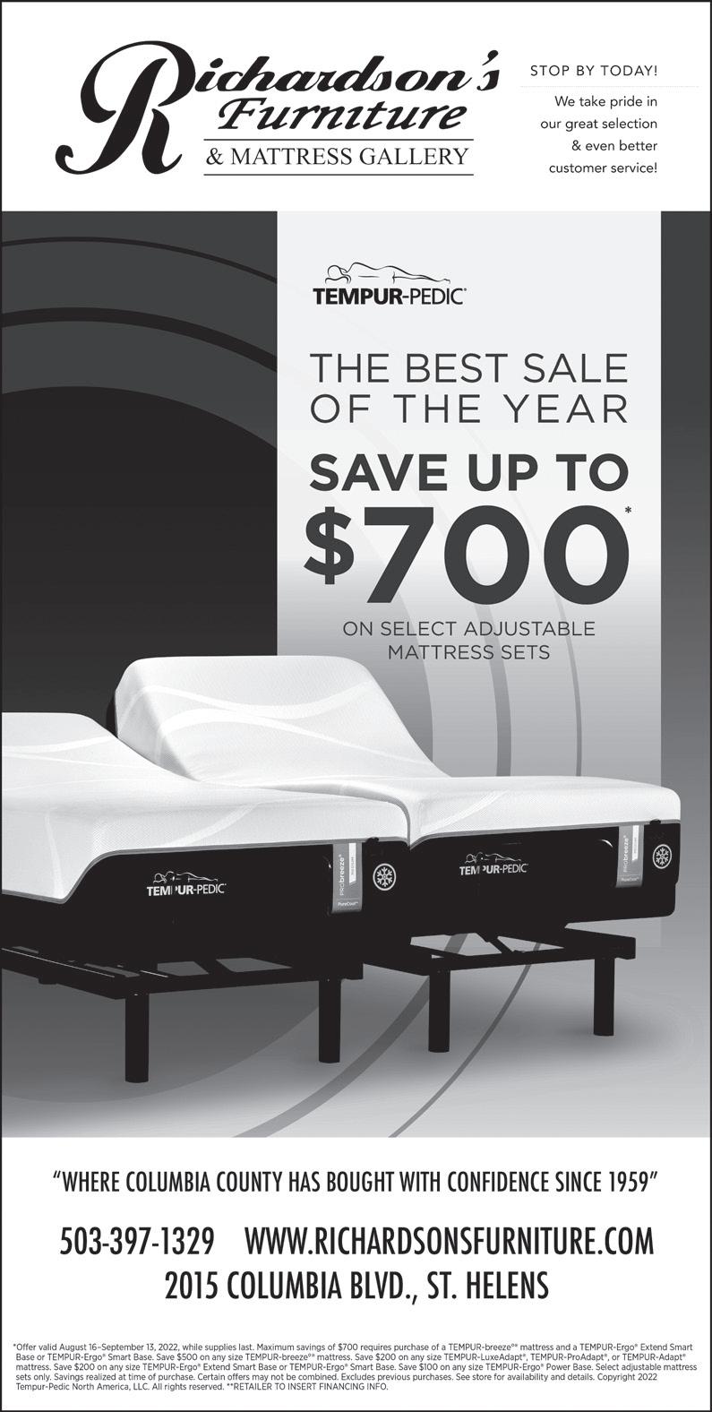 Serving Columbia County since 1881 thechronicleonline.com $1.50AugustWednesday,31,2022 re-employmentOregon’s Page A3 tofiresMultipleleadarrest Page A2 Vol. 140, No. 35 Opinion ..................... A4 Poll ............................ A4 Community Calendar A4 Obituaries ................. A5 Classified Ads ......... A6 Crossword ............... A6 Legals ....................... A7
