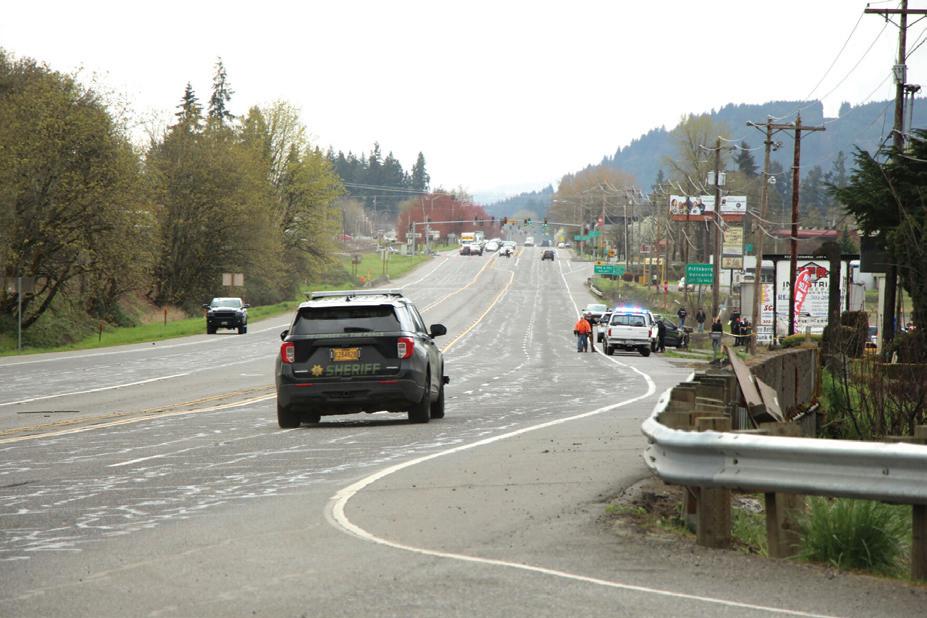 Jeremy C. Ruark / The Chronicle Highway 30 at Scappoose was shut down for several hours during the officer-involved shooting.