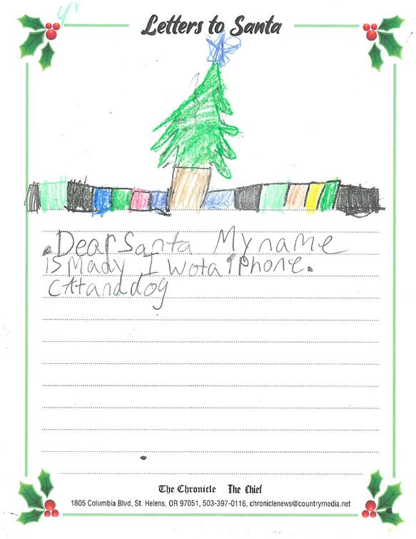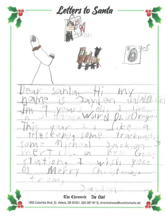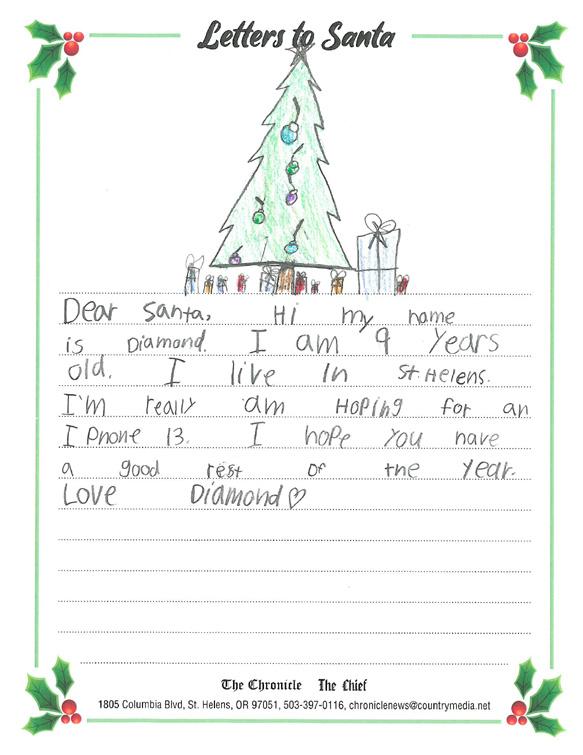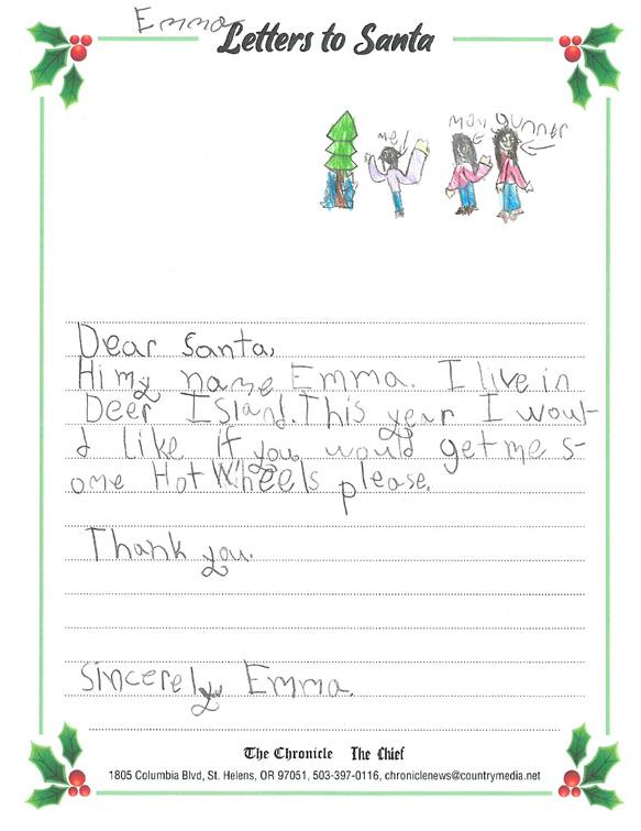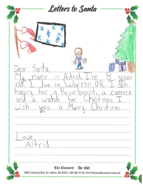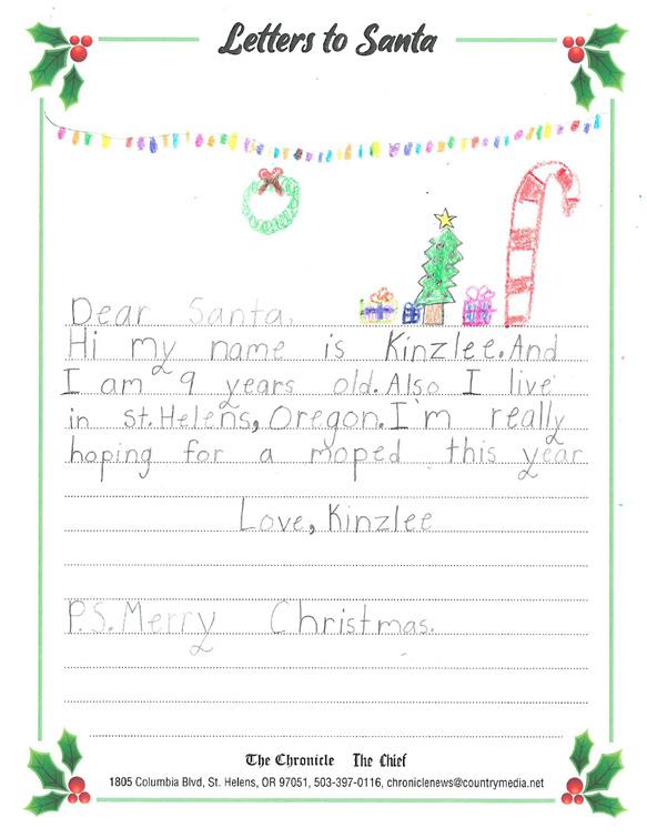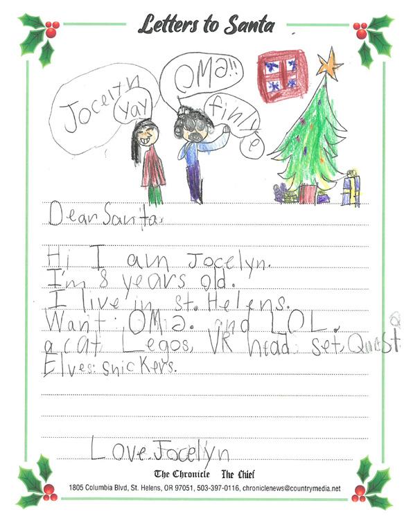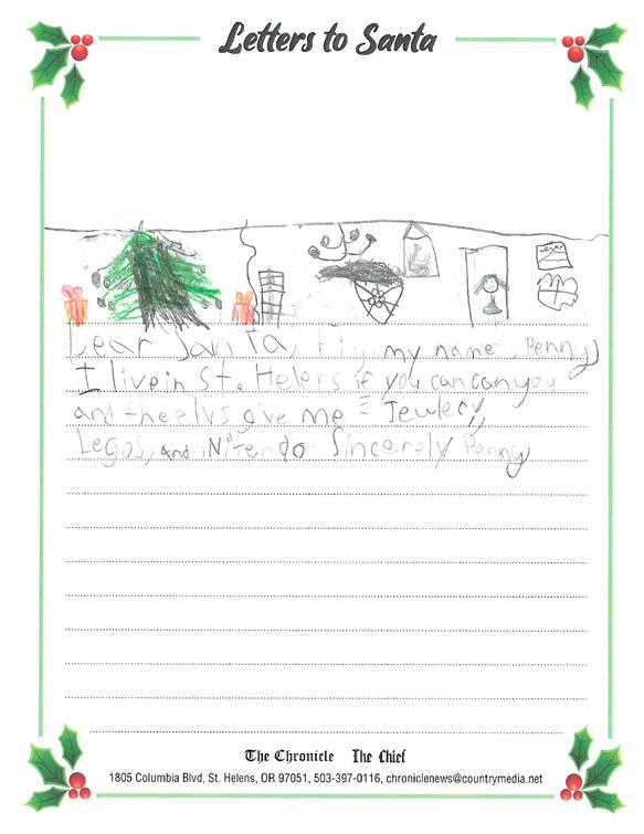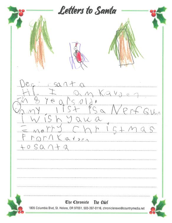 children and The Chronicle is proud to partner with our advertisers to present the following Letters to Santa presentation.
