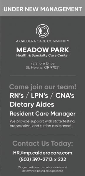 Wednesday, December 14, 2022 Columbia County’s trusted local news source BEYOND THE FOREST FLOWERS AND COFFEE SHOP 245 S 1ST SAINT HELENS OREGON 503-984-4456 SENDING A SPECIAL GIFT THIS HOLIDAY? GET 10% OFF ON ALL CALL IN OR ONLINE ORDERS. CODE: BTFHOLIDAY If you’re a lover of Noble Firs - Come visit our farm and see the hand-pruning techniques we use to retain the Natural Beauty of the Northwest Noble We have a large selection with many nobles 10 ft/up OPEN NOV. 23RD – DEC. 16TH M - F N o o n - D a r k We e k e n d s 9 a m - D a r k P R E M I U M N O B L E S AT W H O L E S A L E P R I C E S 5 0 3 - 3 9 7 - 3 3 6 9 A R e i n h o l d t Fa m i l y Tra d i t i o n From St Helens: Follow Pittsburg Rd to Yankton School stay on Pittsburg Rd follow signs 7 miles to Trenholm Valley, Rt on S Canaan, 200 yards on left From Deer Island: Up Canaan Rd 7 miles, first left after Pinkney Rd on S Canaan2-1/2 miles on the right 503-397-3369 A Reinholdt Family Tradition If you’re a lover of Noble Firs – Come visit our farm and see the hand-pruning techniques we use to retain the Natural Beauty of the Northwest Noble. We have a large selection with many nobles 10/ft./up DUE TO COVID • Trees $60 regardless of size • Large trees-bring crew • Bring your own handsaw • Limited manual support. Open Nov. 25th – Dec. 20th M-F Noon-Dark, Weekends 9am-Dark *Cash or Checking Only!