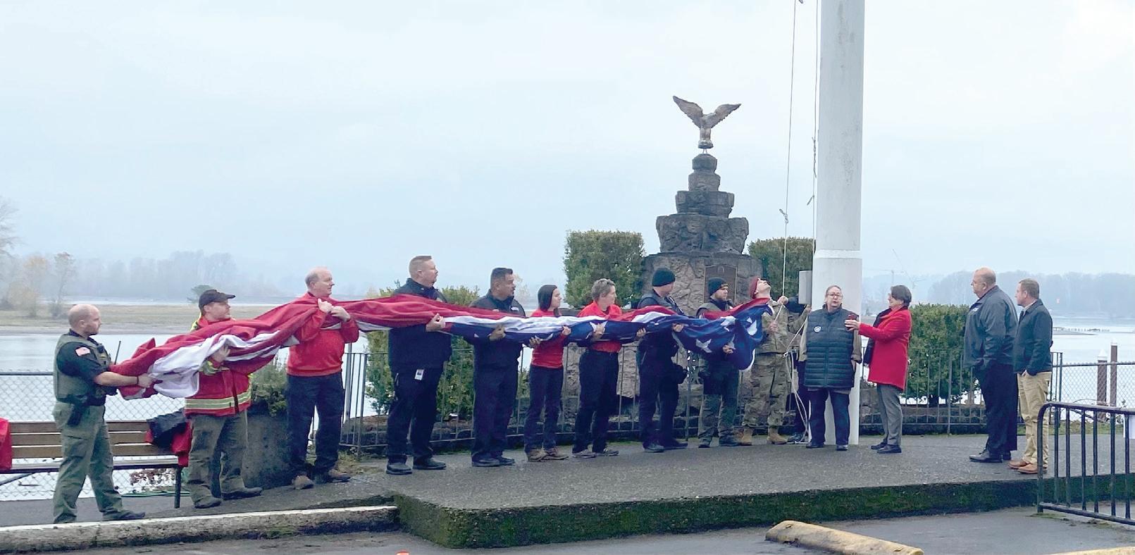 the Courthouse Annex Building. A multiorganizational group of volunteers raised the flag during the ceremony. Personnel from the Columbia County Sheriff’s Office, the Saint Helens Police Department, Columbia River Fire and Rescue, Columbia County Sheriff’s
